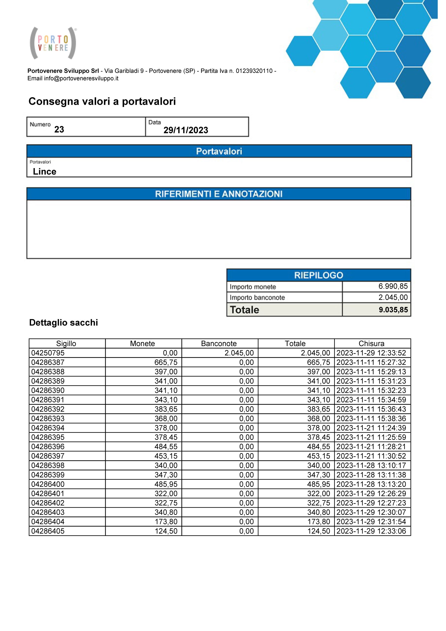 L’obiettivo è quello di consentire agli operatori di svolgere tutte le attività senza la necessità di “contare il denaro” ed in ogni caso consente all’azienda di avere sempre a disposizione i dati del denaro in corso di prelevamento, di quello depositato in sede e di quello inviato ai porta-valori per la successiva conta e versamento